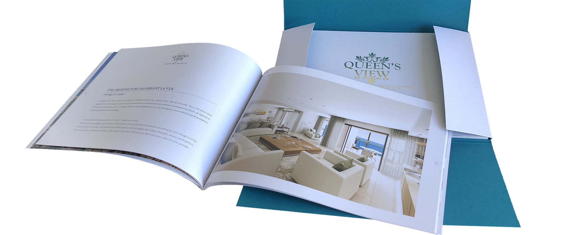 Création de l’identité visuelle du projet immobilier haut de gamme, de sa brochure de présentation délicatement glissée dans son étui sur mesure, rappelant par le choix du papier son emplacement unique face à la mer. Dlight a imprimé la brochure et cet étui mettant en valeur ce luxueux projet par un marquage à chaud de couleur dorée rappelant quant à lui la douceur du soleil méditerranéen.